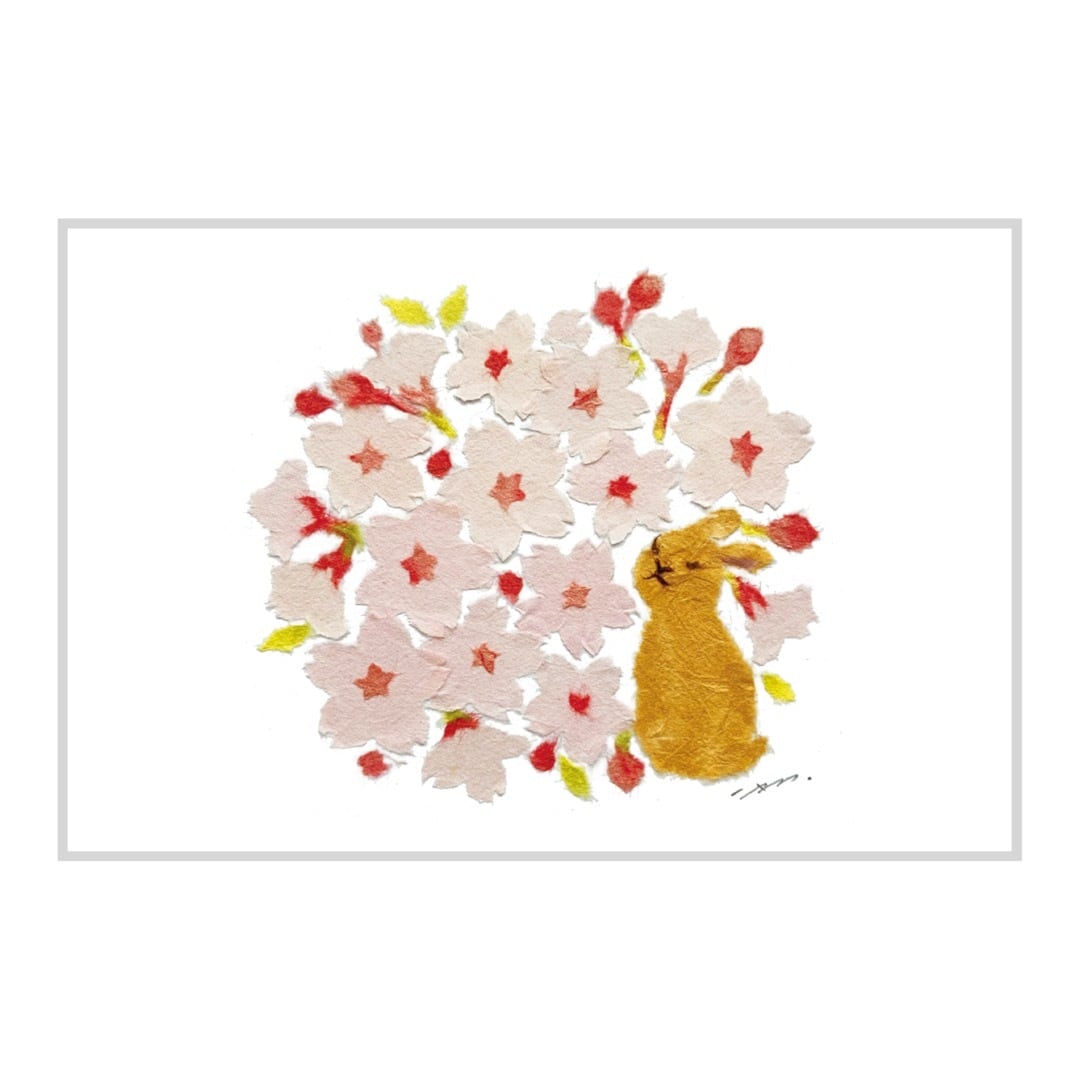 「ちひさきものたち」動物と植物がテーマのちぎり絵デザインポストカードです。